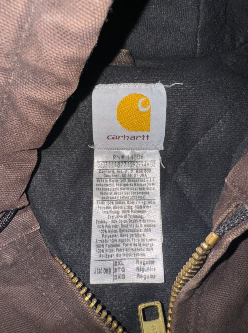 Vintage Carhartt J130 DKB 2XL Canvas Jacket Faded Dark Brown Grunge Distressed