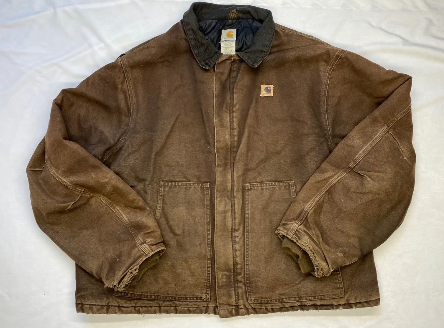 Vintage Carhartt J130 DKB 2XL Canvas Jacket Faded Dark Brown Grunge Distressed
